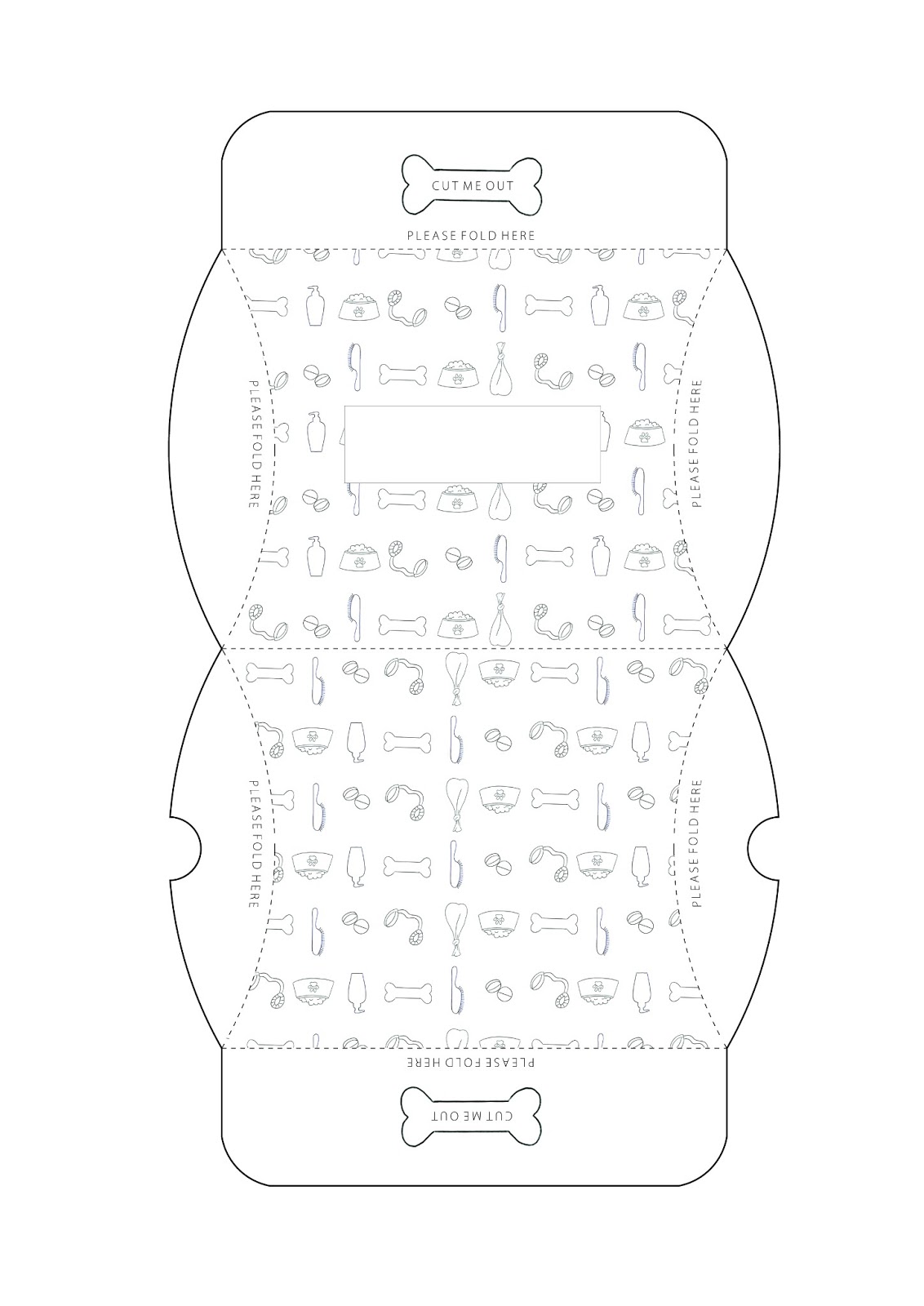 I decided to settle on this net for the treats packaging. I have adjusted it slightly however in terms of design to make it more practical. Beforehand, the box didn't close very securely, meaning that the treats could possibly fall out. I have therefore added two tabs with instructions to fold each one over in order to slot into the other side of the box perfectly. This now means that I can simply seal the whole box by using just the one sticker and there are no boxes for anything to slip out.